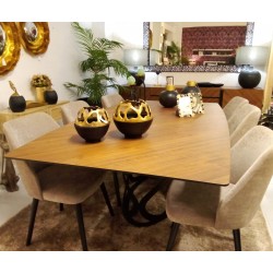 Mesa de Jantar em folha de Nogueira, pé em metal preto | Dimensões: C220 X L120 X A78 cm