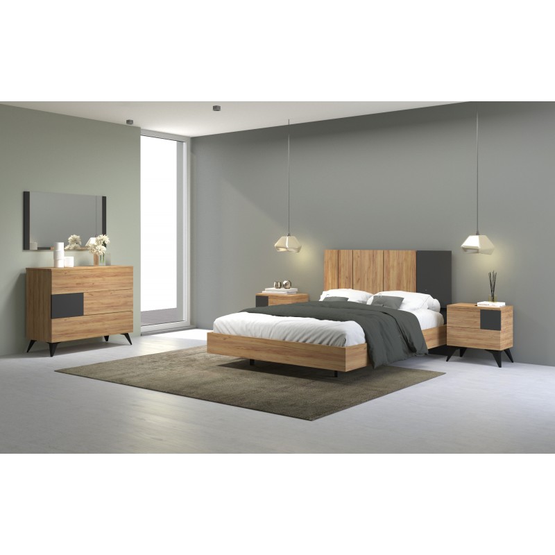 Quarto de Casal em melamina, acabamento em carvalho rústico e ferro estilo industrial composto por:
