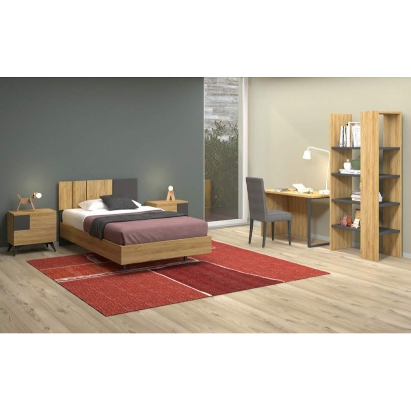 Quarto juvenil em melamina, acabamento em carvalho rústico e ferro estilo industrial composto por: